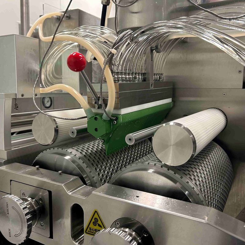 Gestion de la température personnalisable:Le système prend en chargedes fûts de refroidissement personnalisablesavec une largeplage de régulation de température de 15 à 65°CCela vous permet d'adapter le processus de refroidissement à vos caractéristiques spécifiques de gélatine et de remplissage, ce qui permet d'obtenir une formation de capsule optimale pour tout produit.